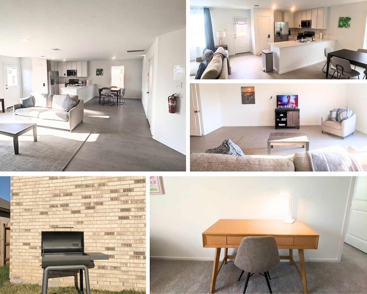 Have fun with the whole family at this stylish place. Welcome to this beatiful Nest, enjoy the privacy of each bedroom, desk, smart TVs along with large outdoor space. Convenience-Relax make yourself a coffee, cook your favorite meal, this place has everything you need to enjoy your stay. Located minutes from Praire View A&M University, John Fairey Garden, Blue Bell Creameries and Houston Premium Outlet, or Houston-all just a drive away. This vacation rental offers comfort and convenience.