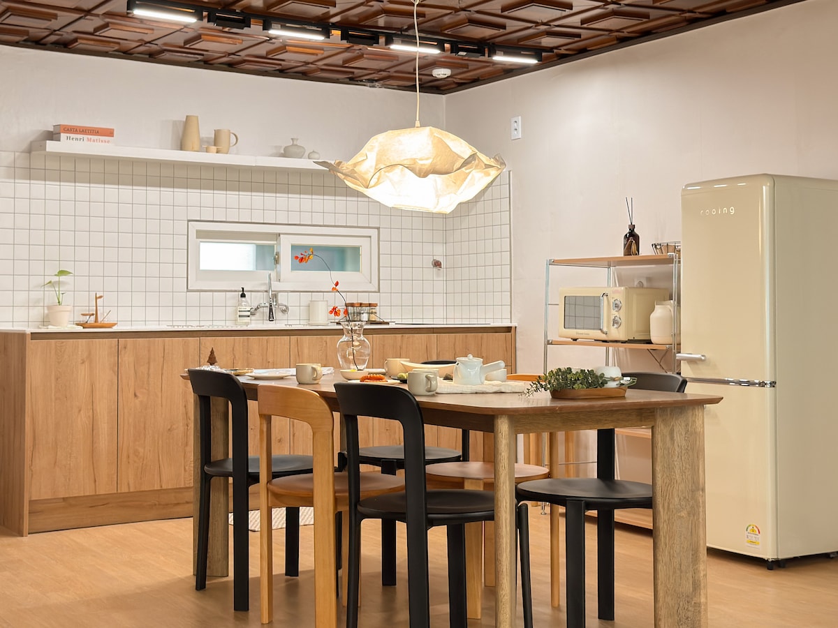 🏡 Moment Mansion 4F Even if you go through it, the memory is the place to stay. This is an emotional accommodation located on the border of everyday life and travel in a quiet alley in Hwanghak-dong, Seoul. In a quiet street, warm sunshine, and colorful space I hope your trip begins calmly, and your precious memories will pile up. This place was remodeled from an old multi-family home. Designed by a space designer, these rooms are in the mood of retro and neutral. Each floor has a different color and atmosphere like a film. During a short trip in Seoul, I hope you will remember it for a long time. (There is no elevator in the building, you need to use the stairs to get around.)