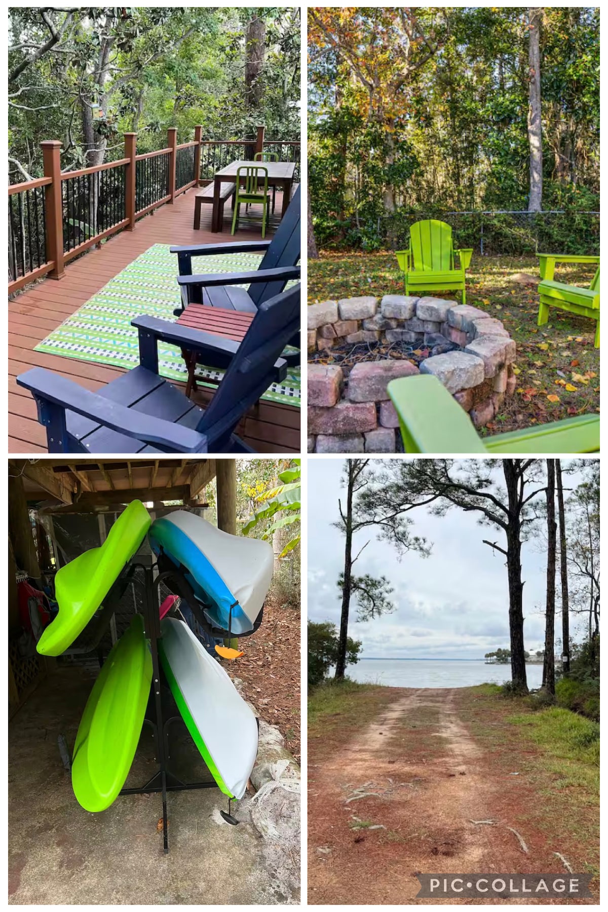 Backyard oasis on a deep water creek. If you are coming for travel ball, love kayaking and/or just hanging out right on the water, you will appreciate this special hideaway. A fisherman’s/nature lovers dream and truly unique rental experience at this creekside cottage with water frontage on deepwater Hammock Creek. Close to the beach but out of the congestion. We have a multi level backyard with gazebo with swing, fire pit and huge deck. Fully enjoy the wildlife and outdoor activities.