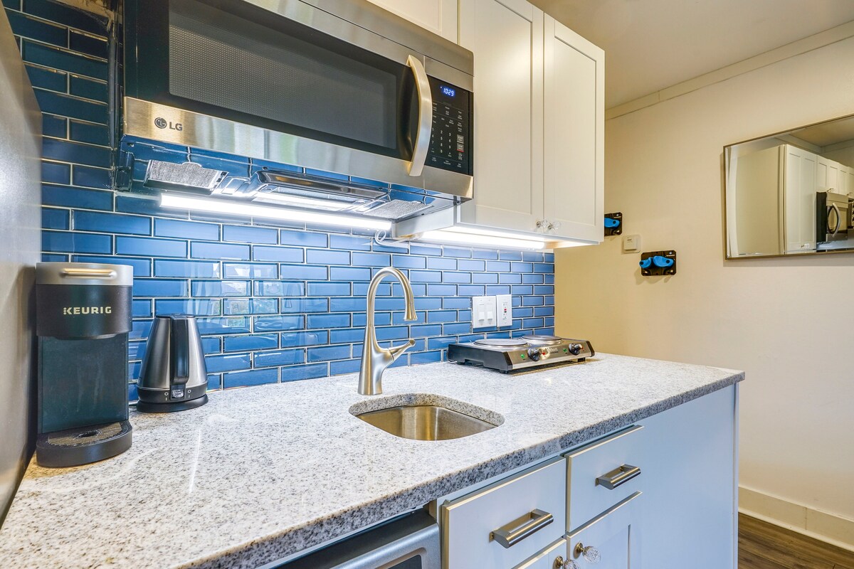 Experience all that Midway has to offer from this spacious vacation rental studio with a stunning bathroom! Located just 1 mile from downtown and only a short drive from ski resorts, hiking trails, and more, this studio makes the perfect home base to relax between adventures. Start your morning off with a coffee on the private balcony before teeing off at the Homestead Golf Club or hitting the slopes at Deer Valley Resort. When you’re ready to unwind, cozy up for a movie night on the Smart TV!