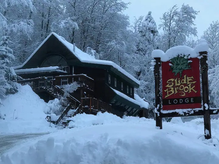 Slide Brook Lodge at Sugarbush Ski Resort provides a classic, Vermont ski lodge experience. Located 1 mile or 5 minutes from Sugarbush Ski Resort between Lincoln Peak and Mt. Ellen of Sugarbush Resort. The 3 suites at Slide Brook Lodge are rented via Airbnb. Only one suite is shown on this listing. Wireless internet is included. Suite 1 sleeps 6 to 8 people with 2 full private bathrooms. There is a shared Lounge Space, a Fire Pit, and a Hot Tub that is on the back deck!
