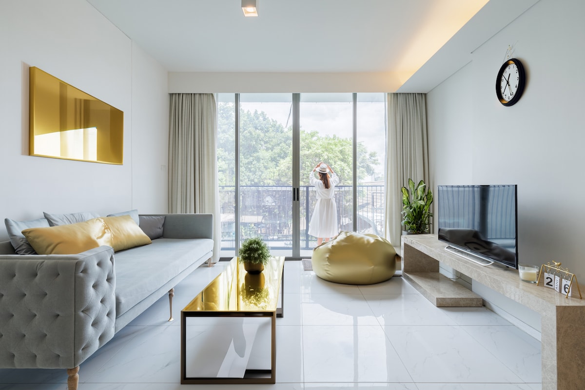 This beautiful Japanese-inspired 60 sqm unit has everything you need for a pleasant stay. The bedroom king-sized bed and personal workspace, and opens onto a spacious semi-outdoor bathroom with a wooden ofuro tub that fits two, and leads to a large walk-in closet. The living room includes a cozy sofa bed and a Ultra HD Smart TV. The kitchen is well-equipped with a microwave, range-hood, electric hob and refridgerator. The large picture window offers a view of the gardens and swimming pool.