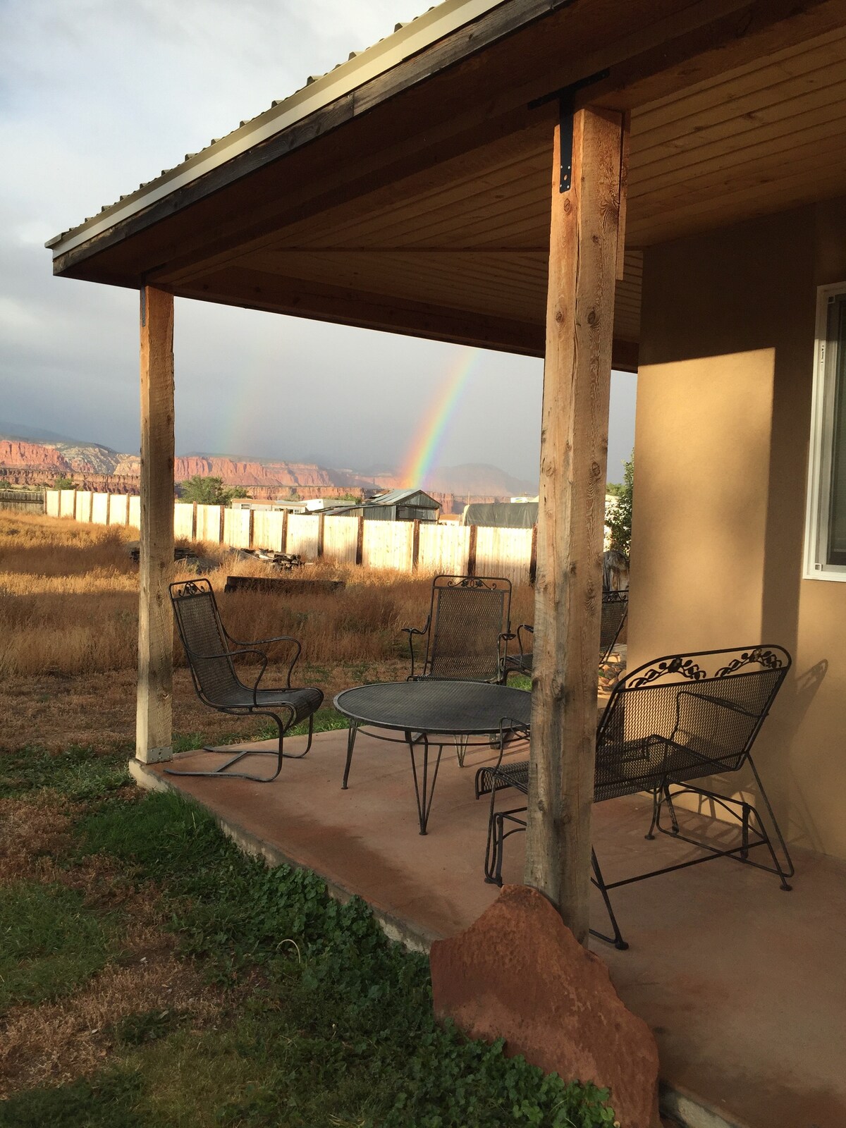Inviting two bedroom bungalow with unique, private, and spacious outdoor space. New, comfortable beds, wood burning stove, artisan hand-made furniture. New heating and AC system. Two dedicated work spaces and 1G fiber internet for remote work! The most shade and privacy you'll find in town. Help yourself to the fruit trees, enjoy the stars and mural of Factory Butte from a hammock, fire up the grill for some patio dining and take a selfie in the #DirtyDevilSaloon