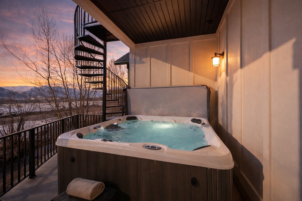 12 minutes to SnowBasin, 15 to Wasatch Peaks Ranch & Close to Powder Mountain 2 Hot Tubs & Pool! Luxuriously decorated 3 bedroom, 3.5 bathroom with garage for your skiing, boating, biking & hiking adventure. Close to Pineview Reservoir & Salt Lake. THIS IS THE PLACE TO STAY LONGTERM - Our home is a home-away from home. Condo overlooks courtyard with pickleball courts, jungle gym, fire pit, pergola, fireplace, gas grills. Luxurious hotel pillow top mattresses similar to Euro feather beds.