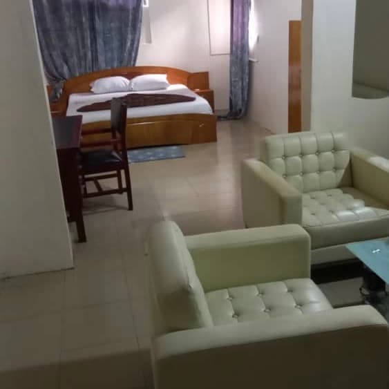 This well-furnished executive one-bedroom apartment with a big hall is the right choice for you. This beautifully furnished apartment comes with a king-size bed, installed water heaters, sofas, satellite tv channels, a work desk, a refrigerator, air conditioning, kicthen, 24/7 room cleaning services, 24/7 free wifi etc. Located at weija, Accra, this apartment comes with a spacious compound where you can host your events. It is perfect for couple or single. Reserve an partment with us now:)
