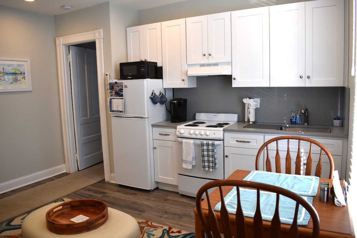 Separate, renovated, sanitized cottage that sleeps 4. 1bd/1ba backhouse with a full bedroom (queen bed) and the living room includes leather sofa bed (queen). Entrance of the cottage has a porch for morning coffee or evening cocktail. Fully equipped kitchen to cook & prepare food for the beach. 42-inch TV & free Wifi. Workspace w/ desk, chair, monitor. Air conditioning/heat throughout the cottage. 2 beach passes, beach towels, beach chairs. Plenty of street parking.