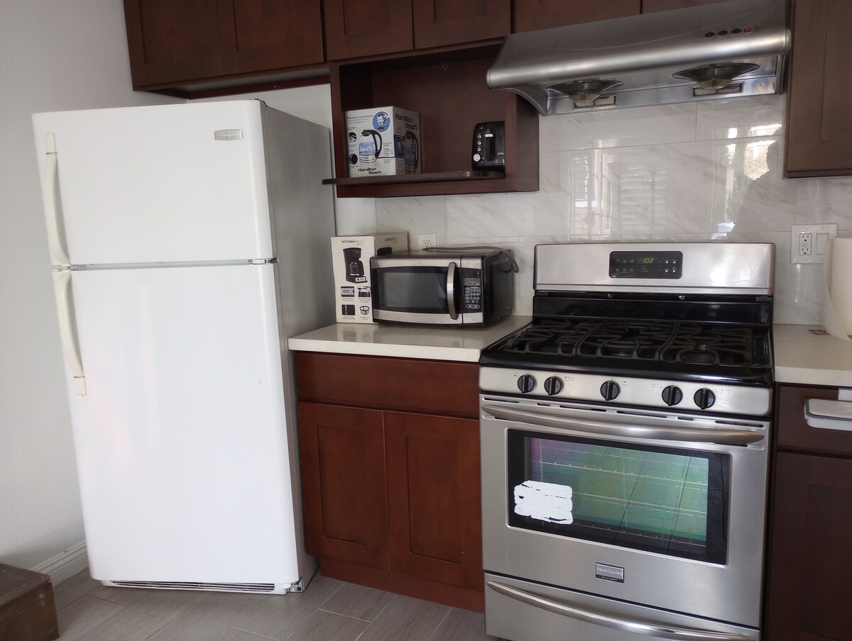 This newly renovated studio is in downtown Baldwin Park, with walking distance to all the restaurants, Starbucks, and grocery stores. It's in a gated property and with your own private entrance, bathroom, kitchenette and living space. New 55'' 4K TV, new kitchen appliances, new furniture, everything inside the studio is new. The studio has a queen-size bed, dining table, a dresser and a clothes closet. Free parking on premises and 24/7 access to free laundry.