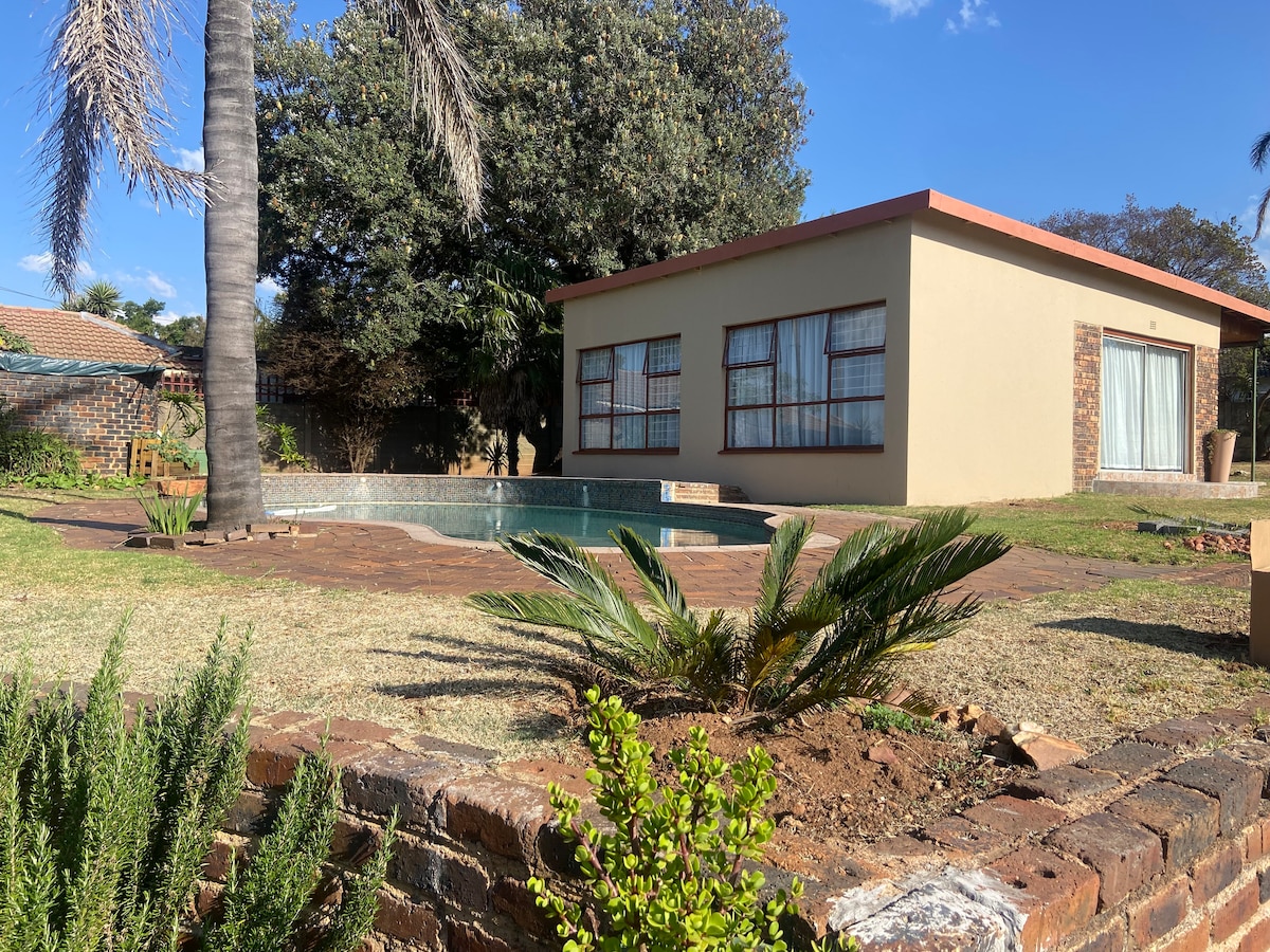Enjoy a stylish experience at this centrally-located place. Self - catering accommodation on the owner’s property centrally located in the Kloofendal suburb and is ideal for either corporates or leisure travellers. The cottage can accommodate 2 guests at a time and comprises a spacious separate bedroom , bathroom, open plan lounge and kitchen. Enjoy a Full selection of DStv channels on a Smart TV.Access to free uncapped Wi-Fi is available. The property is equipped with solar a system .