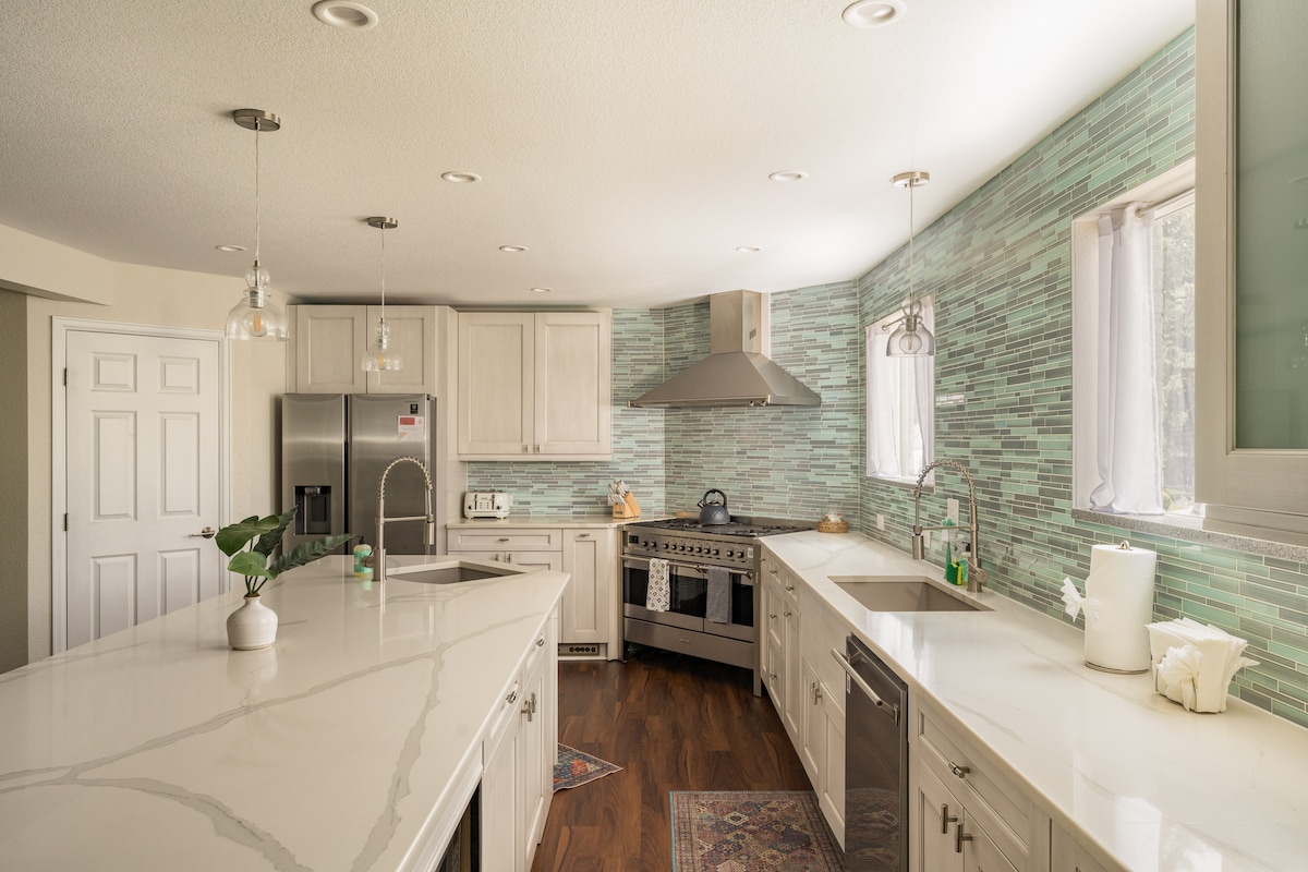 Nestled in a picturesque neighborhood, our 2,300 sq ft home showcases stylish decor and design. Every corner is curated for your comfort. Beneath vaulted ceilings, bedrooms are sanctuaries with new down comforters, pure cotton sheets, and plush duvets. Rest on 12” memory foam mattresses and down pillows. We spent countless hours meticulously crafting the perfect home away from home, so you can kick back and enjoy this beautiful space.