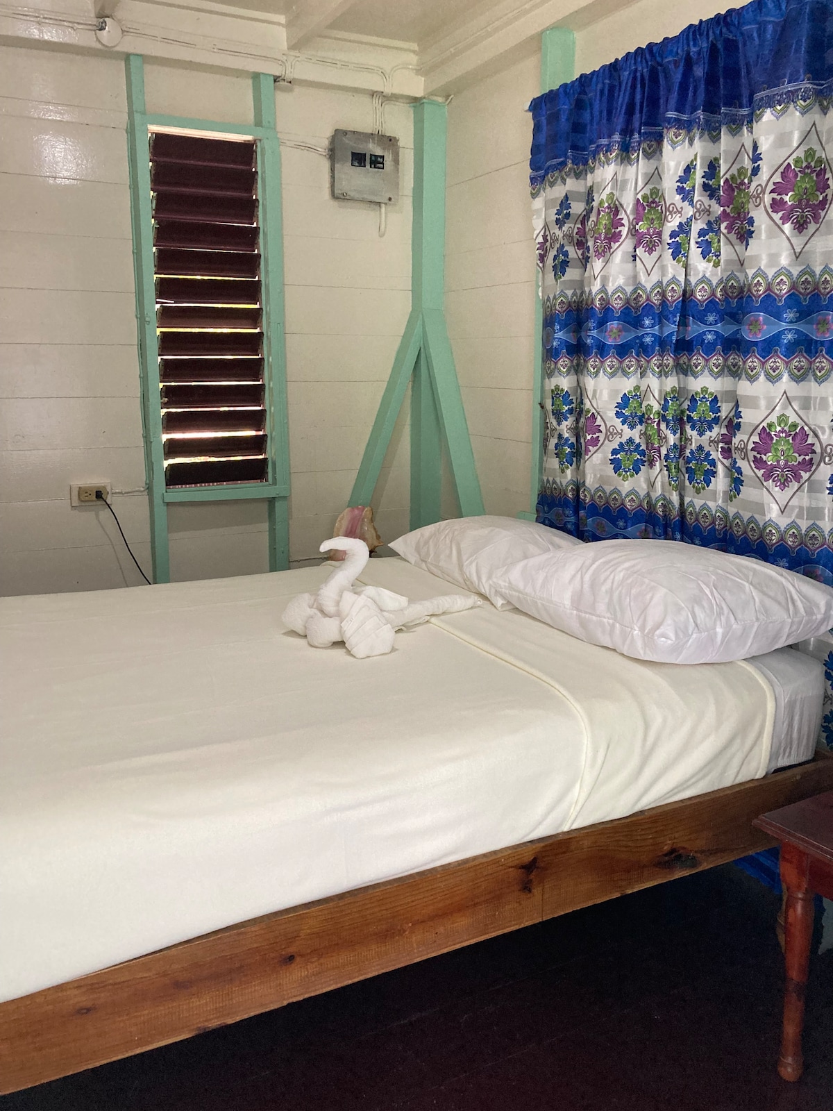 Enjoy a peaceful getaway at this cozy secluded property! Located on Norman Manley Blvd right across from 7-mile beach and a few minutes drive into the center of town. This property is a Newley renovated gem of the most charming and gated communities in Negril! This room is fully equipped with all of the essentials including a queen and full bed, air- conditioning, microwave, mini fridge, closet space and cable television.
