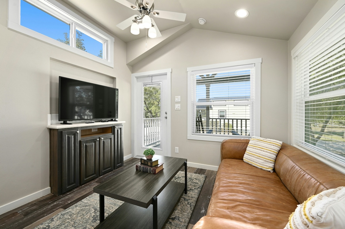 Stay in a charming, modern tiny house in peaceful Cedar Park, just north of Austin. Enjoy ample parking and a prime location within walking distance to the new library, restaurants, trail, and the Saturday farmers' market. Only 5 minutes to the HEB Center, local breweries, and Wild West, and just 8 minutes to Crossover. Perfect for a relaxing getaway with easy access to everything you need!
