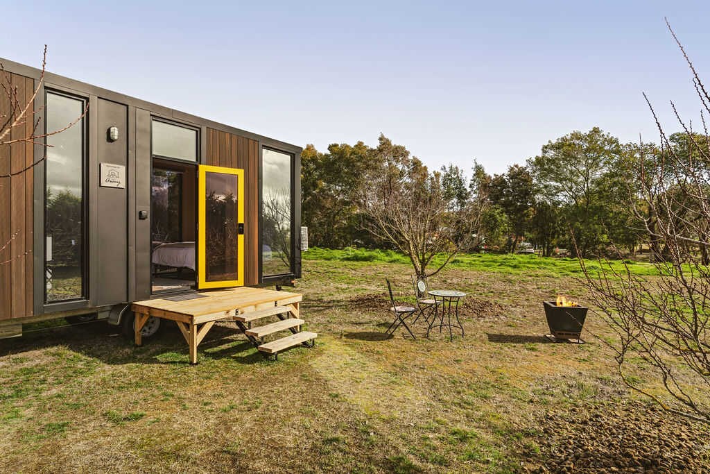 A secluded and intimate luxury escape inspired by the need to live smaller and more sustainably, Monterey is an eco-friendly off-grid tiny house nestled amongst 35 acres of native forest offering guests the perfect opportunity to explore nature, unwind and recharge. Built from salvaged Monterey Cypress timber, the house offers a dreamy king sized bed downstairs with floor to ceiling windows. Explore the surrounding forest and wildflowers and immerse yourself in the sounds of nature.