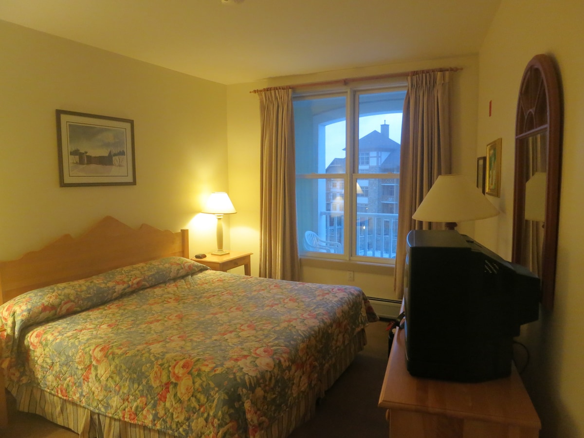 Directly on the mountain. Minutes walk to 2 trails. Full kitchen, dishwater, washer/dryer, microwave. Fireplace with free wood. Large screen TV in living room and tv in each bedroom. Plenty of board games. King size bed in Master. Free parking for 2 cars. Ground floor with deck with tables and chairs for relaxing. Free parking. The pool (indoor & outdoor) and hot tubs are free to renters as is fully equipped gym (all year) and tennis courts in summer.