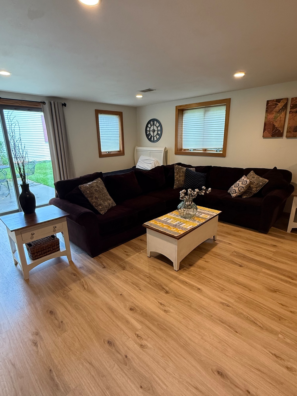 Enjoy your stay in the Spring Green Area! This private apartment in the lower level of our home is located on the edge of town - close to everything you're here to see! This space provides a home-like feel while you tour the area. Offering a one bedroom (queen bed) with the ability to sleep up to 4 more people (2 on sectional sofa and 2 on air mattress), plus a loaded kitchenette (no stove), dining area, bathroom, extra space for gaming (includes a free arcade and foosball) and private patio.