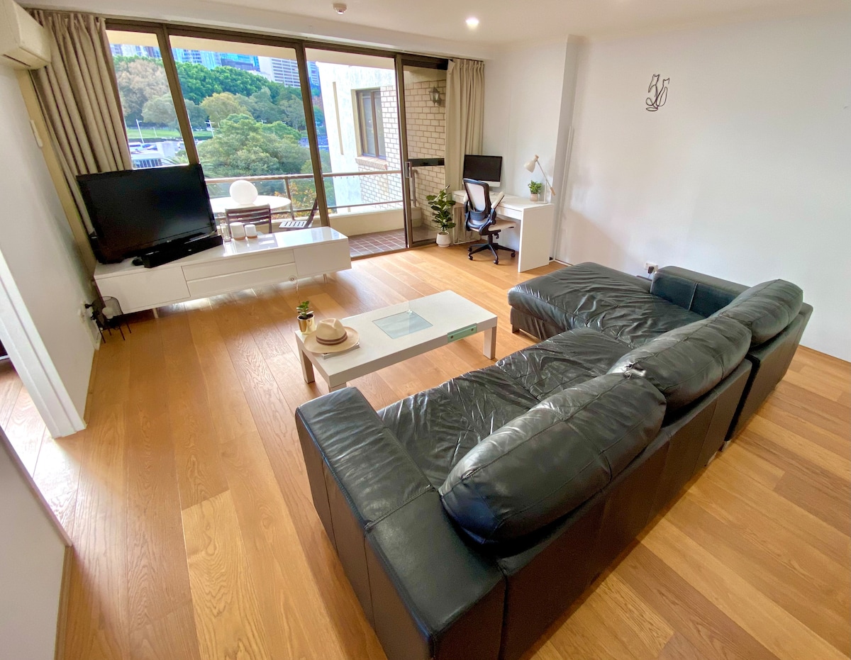 Kick back and relax in this calm, stylish space. Enjoy the gentle sounds of the twinkling yacht masts in the breeze. Perfect views of the Sydney skyline across the Botanical Gardens from all windows. This luxurious 1 bedroom apartment is your retreat getaway, with open plan living, kitchen and dining space. Enjoy a stroll along the waterfront to the Opera House, or savour a long lunch at one of the iconic restaurants right downstairs, on the Woolloomooloo Finger Wharf
