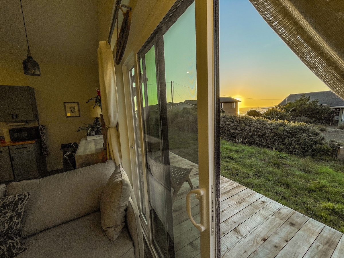Just remodeled for a more spacious 400 Square feet , with two gravity recliners and a comfy queen bed and private bathroom and light eating area. We are located on a full half acre. We live in the main house and the studio is in the front of our house, not on ocean side, a View of the ocean can be seen from the kitchen window , there’s a private courtyard that takes you to the ocean. Please do not bring any cooking devices as this is not allowed, A 110 plug is there for EV chargers.