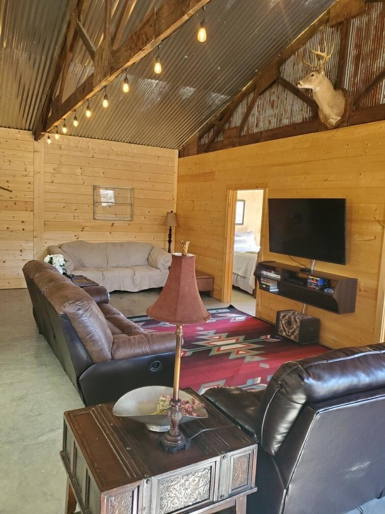 This timeless nostalgic style cabin will take you back in time sitting on 8 acres all to yourself. Feel free to wander to the bridge and enjoy the park like setting and fire pit. Only 1.5 miles to Petit Jean St. Park. Open floorpan, 2 bedrooms & 1 bath downstairs. Upstairs loft has 2 single beds. Wood burning fireplace. Large kitchen, bar stools, new frame tv with Netflix, fully stocked kitchen, coffee maker, coffee and creamer provided. Covered back porch overlooking.