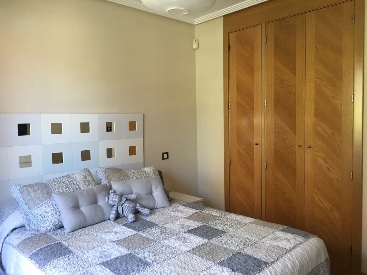 Large 90-meter apartment, bright and with everything you need for a quiet and comfortable stay 5 minutes from Valladolid. Free Wi-Fi and air conditioning. It has 2 large bedrooms, one with a 1.50 bed and a 32"TV and another with two 90 beds. Kitchen equipped with new appliances, terrace with furniture, 2 bathrooms, and 20-meter living room. We have thought out and designed the apartment so that travelers feel at home and enjoy their stay.